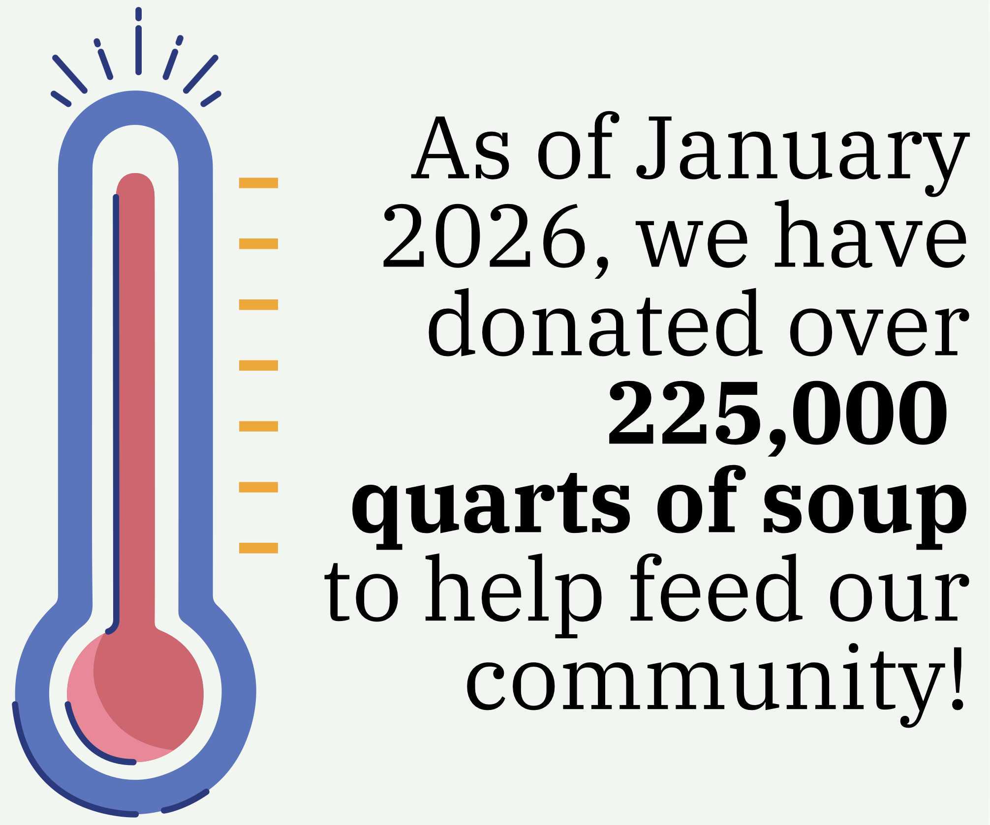 1. Make nutritious and delicious soups from August through April and work with local organizations to distribute the quarts to individuals and families in need, and